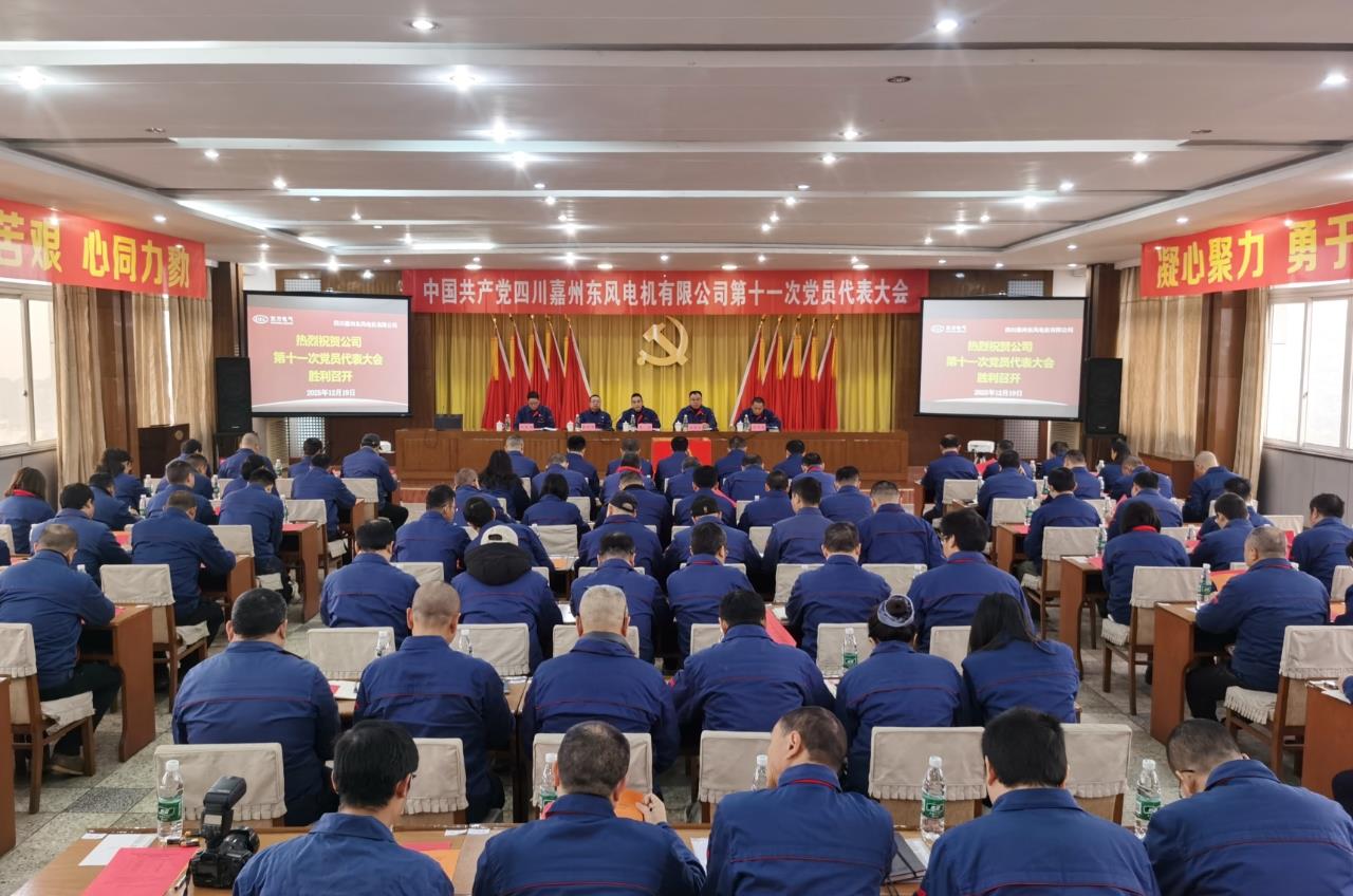 2025年12月19日,中共四川嘉州東風電機有限公司委員會召開黨員代表大會,選舉產生新一屆黨委委員和紀委委員。會議由公司黨委書記、董事長曾建主持。