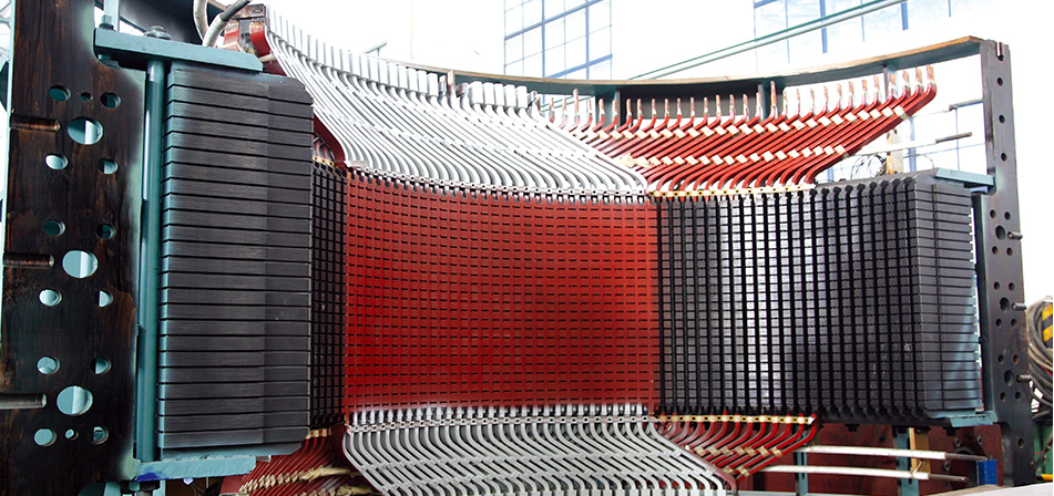軸流式機組共91個,其中軸流轉漿式機組53個,軸流定漿式機組38個,總計203(套)機組,水頭范圍3.5m~38m,最大單機容量為50MW,轉輪直徑120cm~580cm,轉速78.9rpm~375rpm,發電機機座1.73m~8.2m。